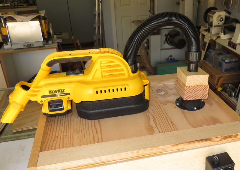 If one portable vacuum is not sufficient, I'll make an adapter so that I can use two portable vacuums simultaneously. I could have the two holes for the portable vacuum hoses coming out the side of the wooden adapter, perhaps.