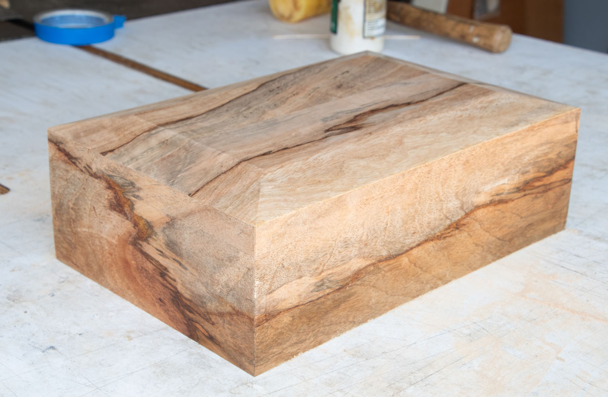Be careful with the coarse sandpaper and don't take so much off that the sides are exposed on top. Here's the box with the bevels sanded.