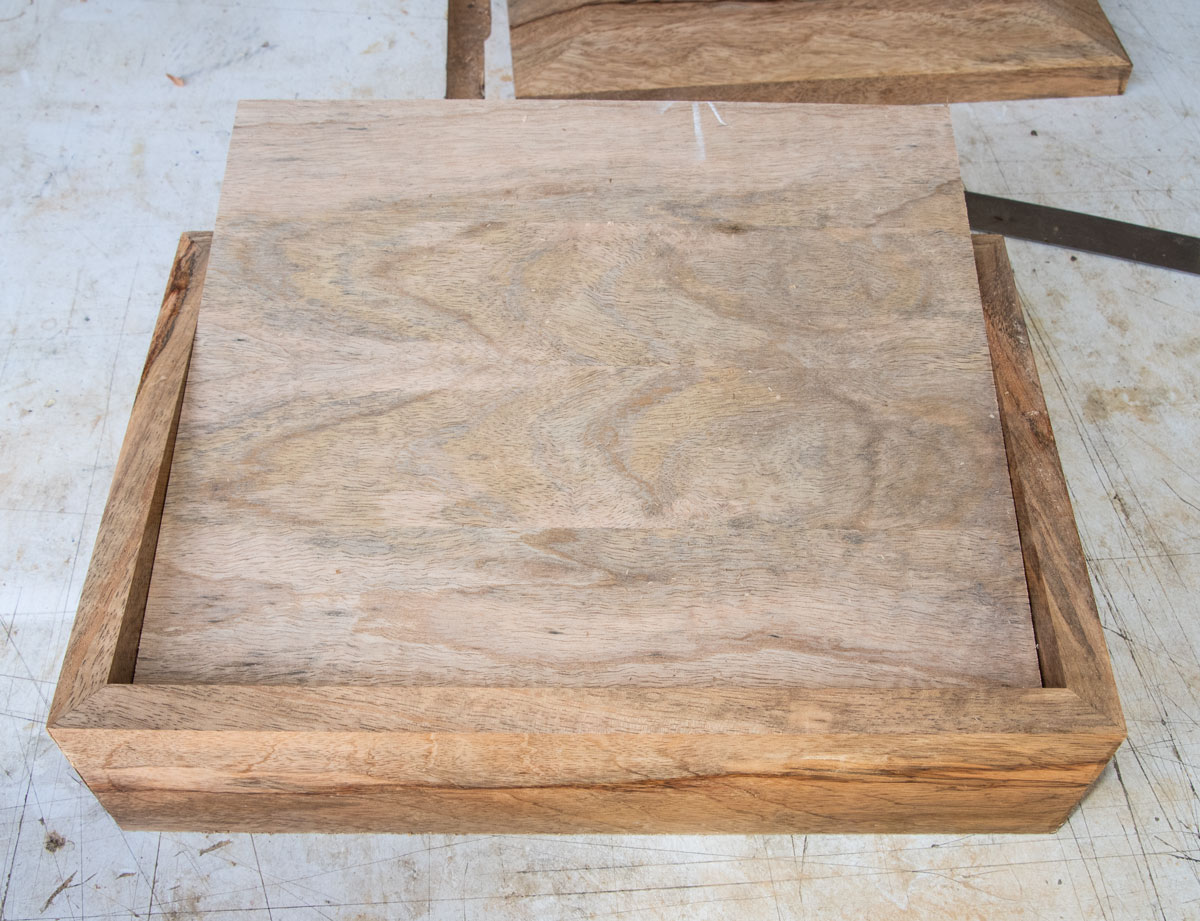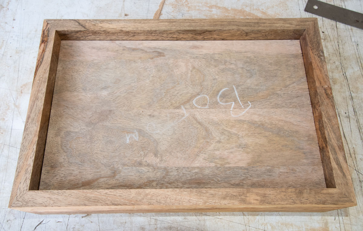 This is how it comes out. Although the panel is not rubbing on the sides, it is too tight, as is. The tray will act like a piston and it will be difficult to remove from the box because of air pressure. You need the tray to be a bit small so air can flow around it and the tray is easy to remove. We'll accommodate for that by making the sides a bit short. This also makes it easier when we attach the sides to the bottom - we don't have to be quite as critical in the alignment.