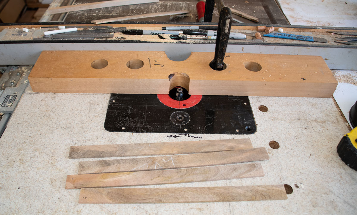 The first step in making the sides is to round over the top edge of the sides. I'm using a 1/8 inch roundover bit.