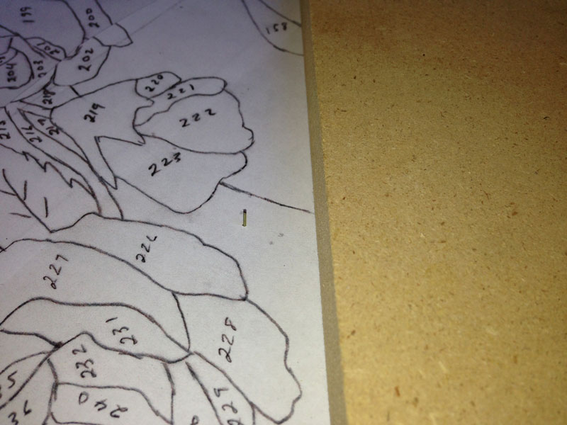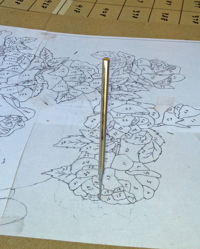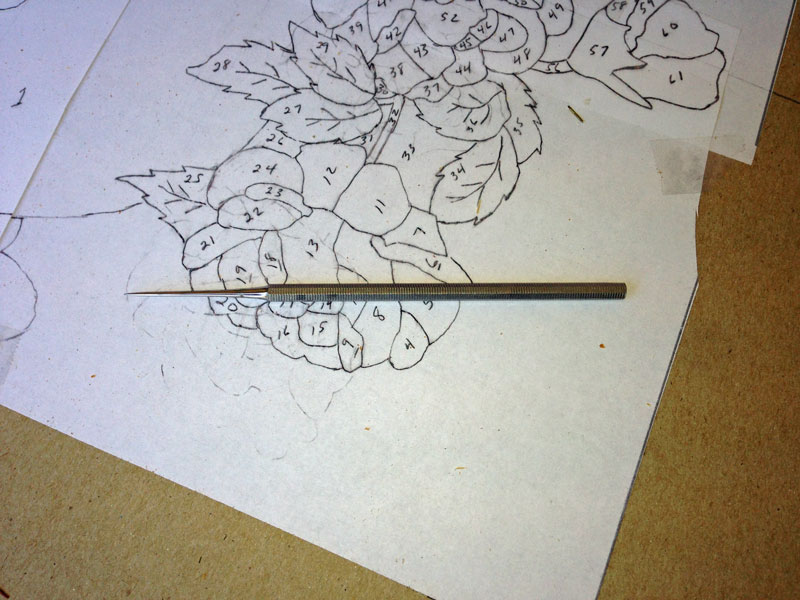 For anyone who's interested, here's the design. I'm finished drawing it (except for some minor revisions) and now I'm numbering it. I sometimes miss numbering a piece and have to add the number when I'm cutting the pieces out.