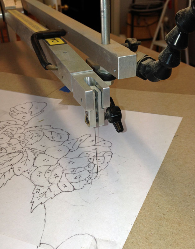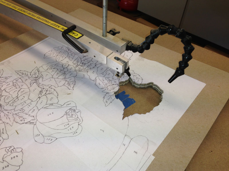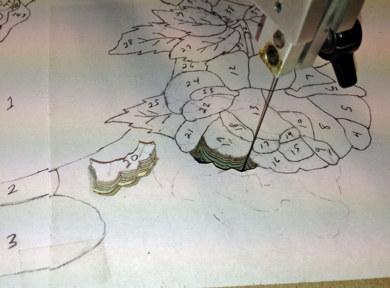In cutting the elements out, I tend to proceed from one end to the other. In this design, I'll go around the vase - the vase will be the last thing I cut out.