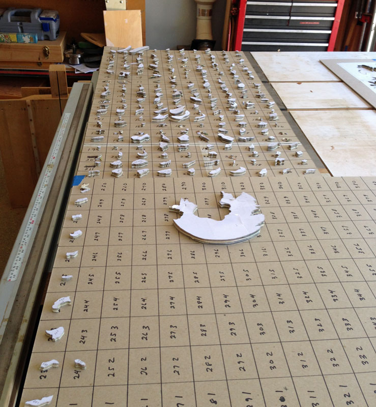 9/3/2013 I finished cutting out all the elements. It normally would not take me this long to cut out this many pieces (about 240) but I had other things going that limited how much time I could spend on this project.