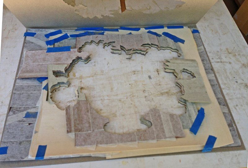 And here it is after trimming (you're looking at the glue face). The required size is 22 1/2" by 16 7/8" so I went about an inch larger in both dimensions. After everything is put together, I'll trim to size.