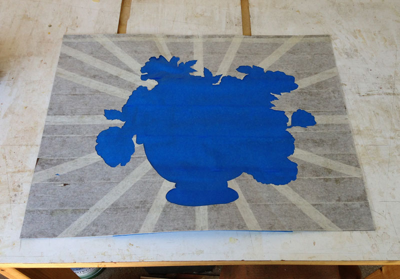 Then I flip it over and put wide blue tape on the back. I use 3" blue tape.