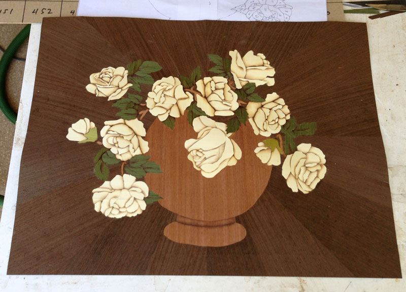 Next, I need to get with my wife and select the colors for the roses and the vase. Then, I'll prepare those veneers in a similar way, and make up the packet.
