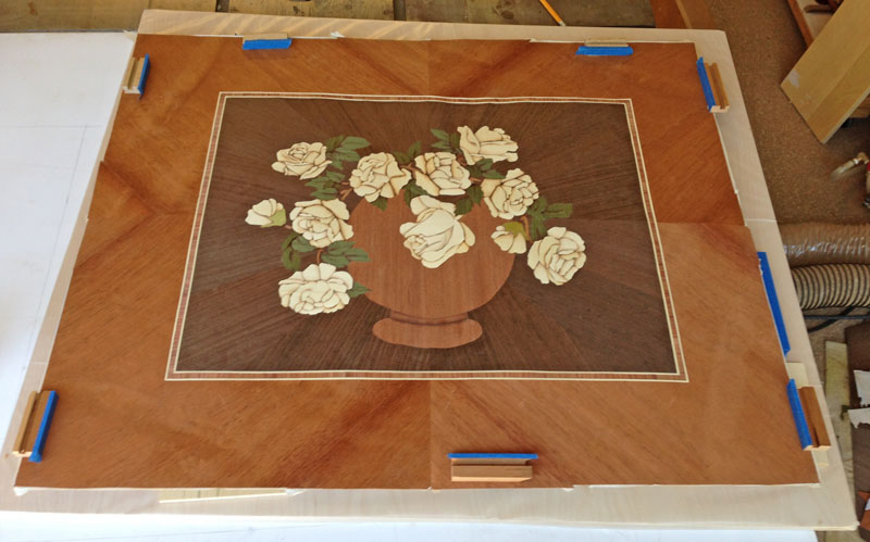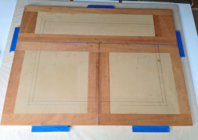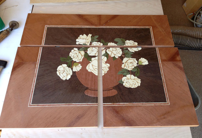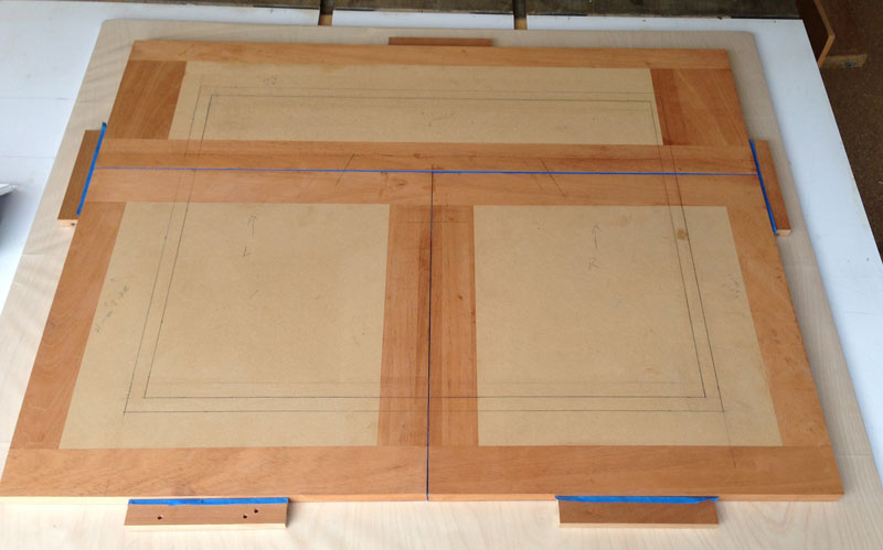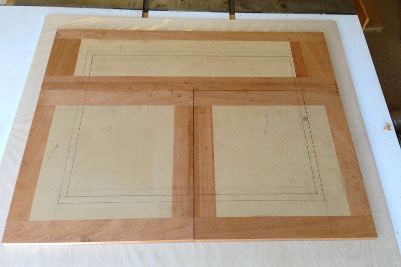 This completes the marquetry and veneer work. Next, I'll start preparing for gluing the panel to the doors. It's going to take some special "jigs" to hold the doors in place during the press.