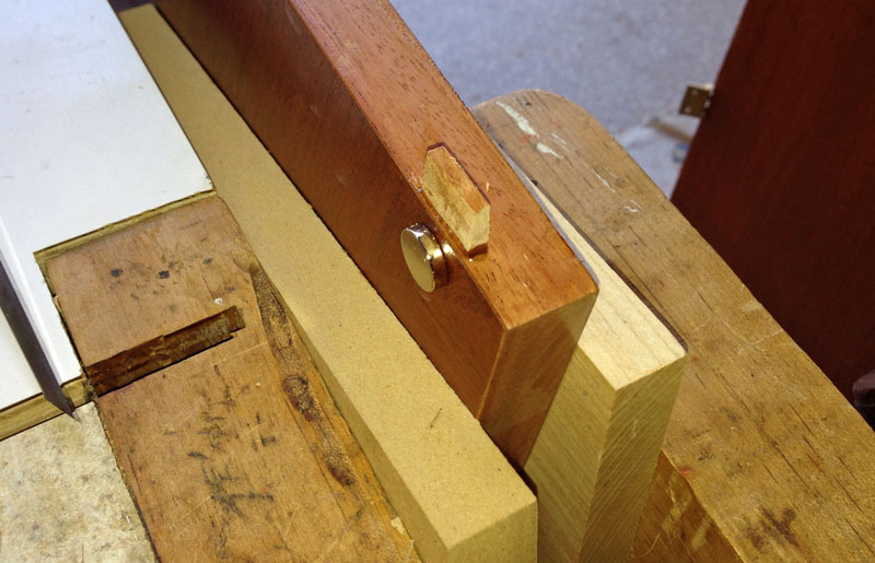 I made some blocks, 1/2" thick, to use to hold the doors in place. It's important that the blocks be thinner than the doors so that there's no risk of them holding the caul off the doors.