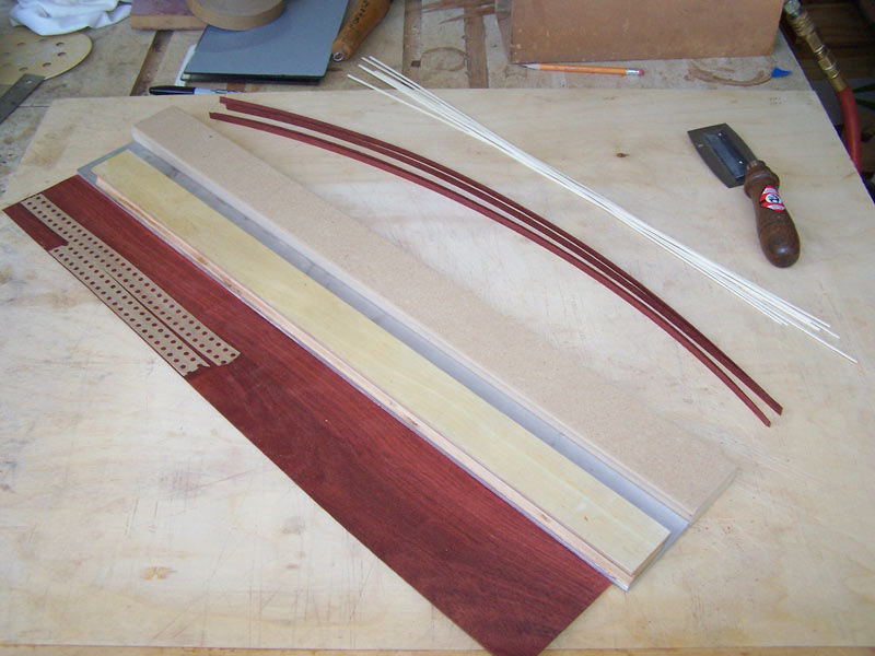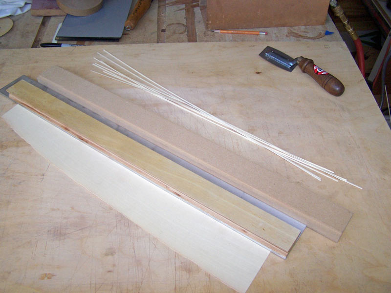 In preparing to do the banding, we'll cut the holly and bloodwood using the filleti guide. I cut eight strips of holly, each 1/16" wide and four strips of bloodwood 1/4" wide.