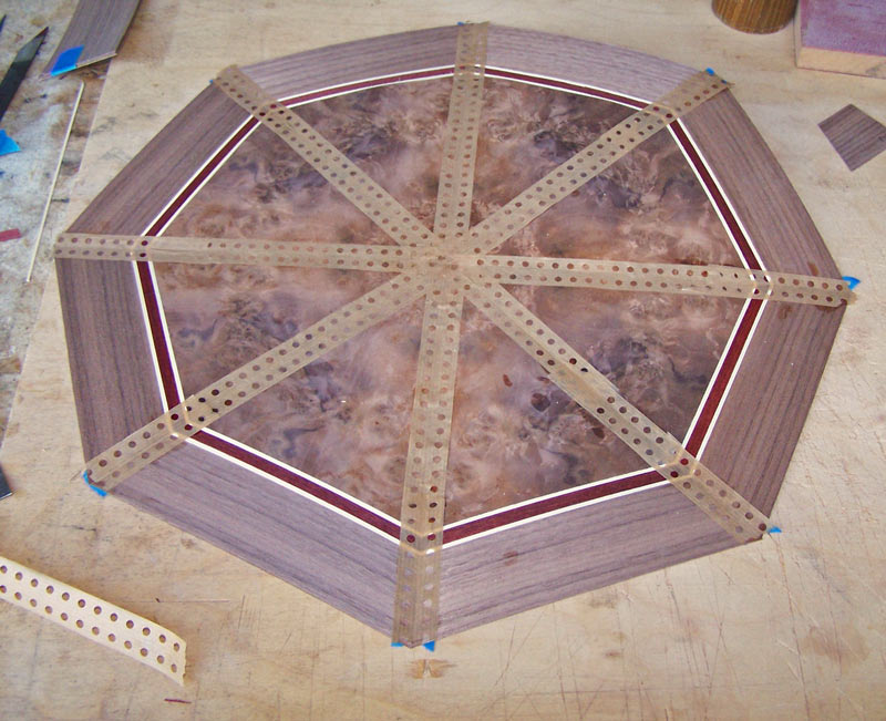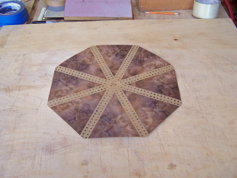 Do all eight miters. This is what your veneer will look like after cutting the miters.
