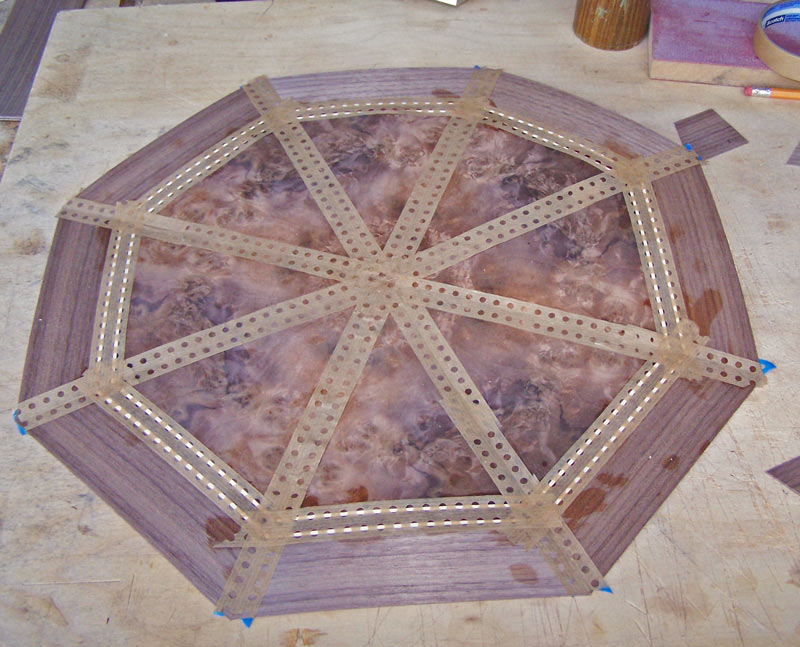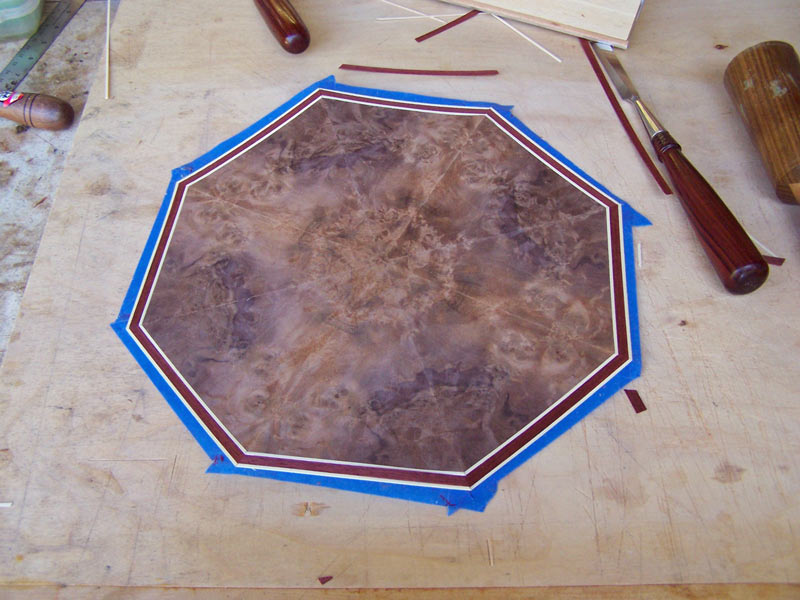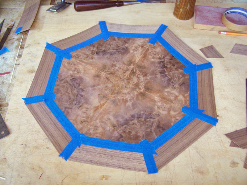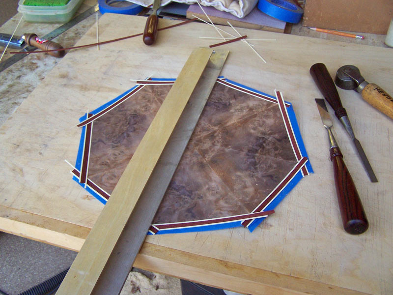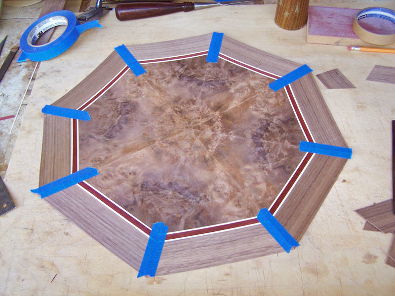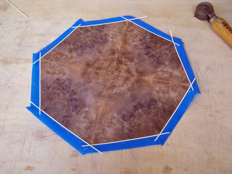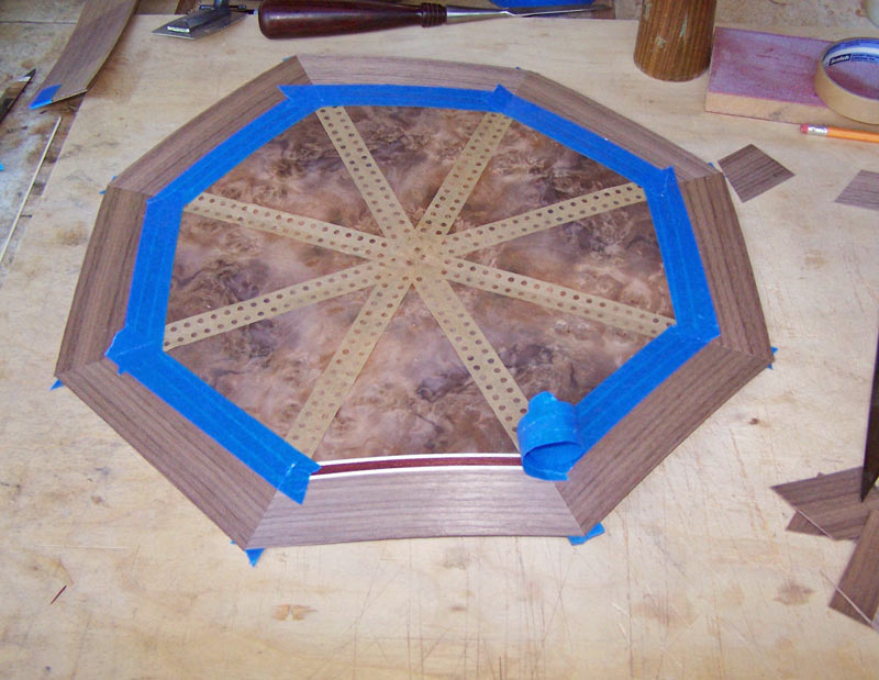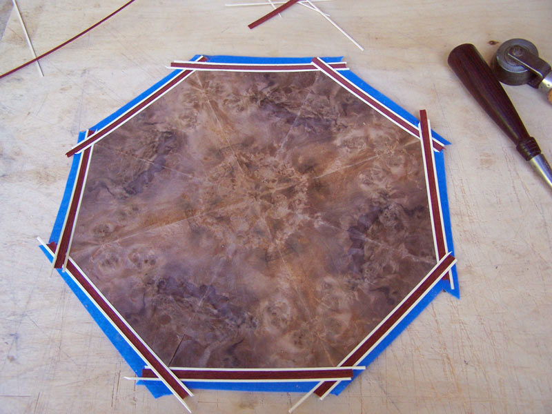 Then put 1" blue tape around the edge of the field, attached to the veneer by about 1/8".