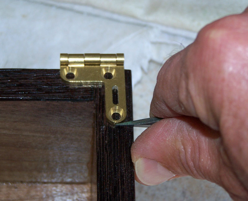 Incidentally, I use Japanese marking knives which are single bevel knives. This allows me to place the knife mark exactly against the front of the hinge wing.