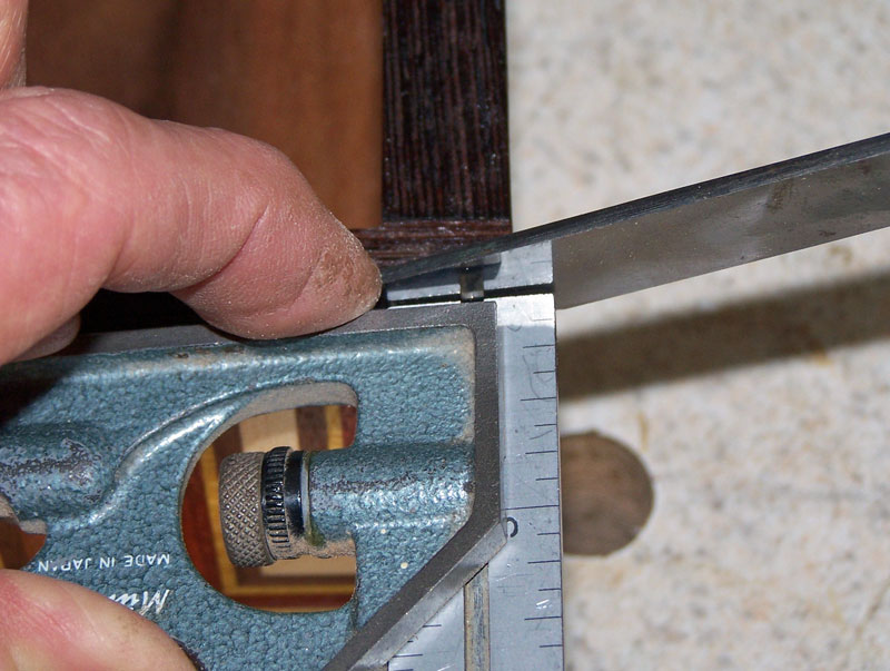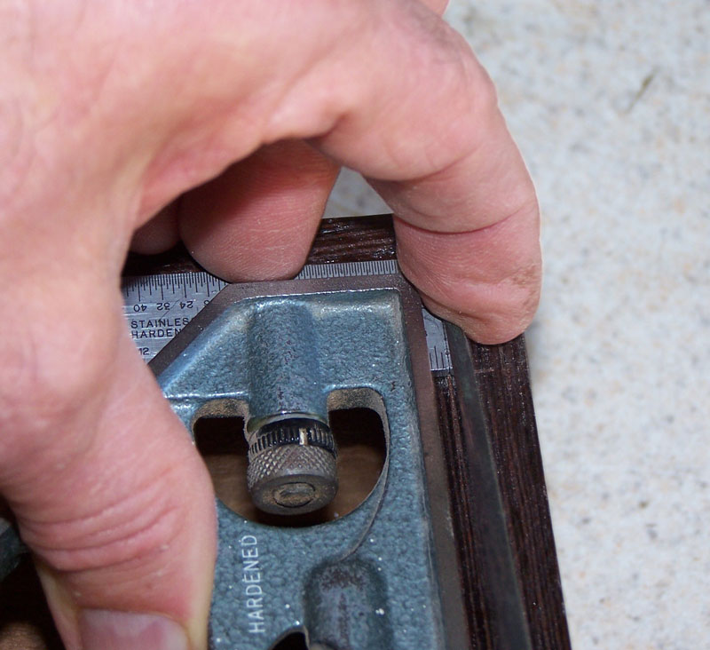 I have to hold everything AND take the picture so this looks a little strange. It looks normal when two hands are used to hold the combination square and the knife.