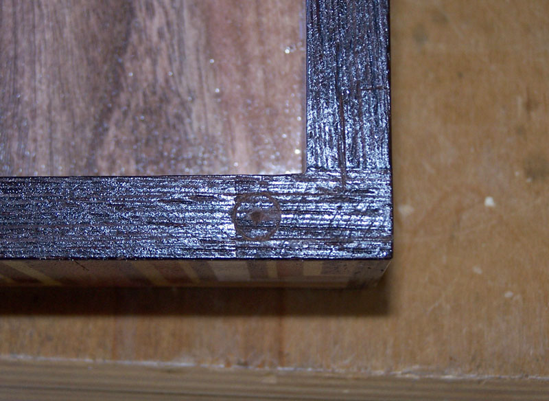 When I received the box from Scott, I put the top on and rotated it to look at how the top fit to each side. I found that the veneer pattern would only line up on all the sides when the top was put on one way. So that's the way I'm going to orient the top to install the hinges. That's the orientation shown in the pictures above.