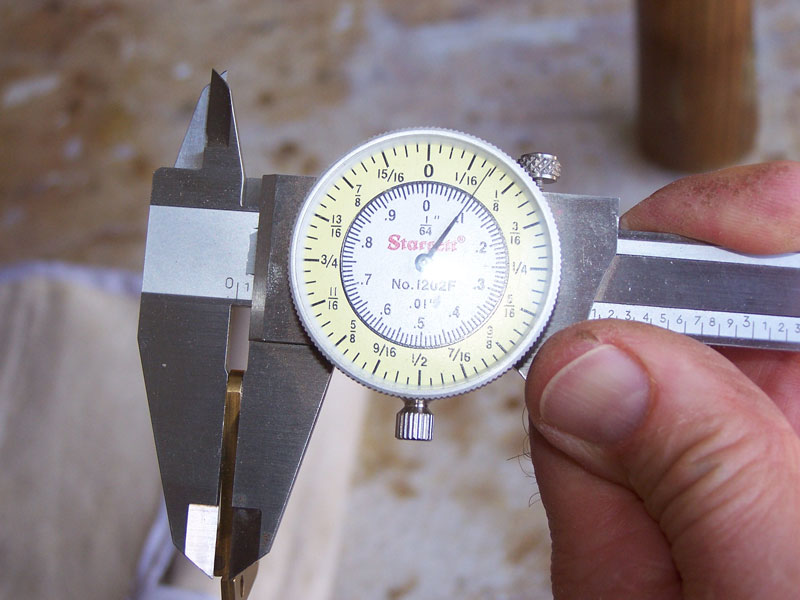 So when I drill the hole, I want to go just a bit deeper. Although I don't show the whole caliper, I'm using the caliper as a depth gauge and I drill the hole just a bit deeper than 3/32".