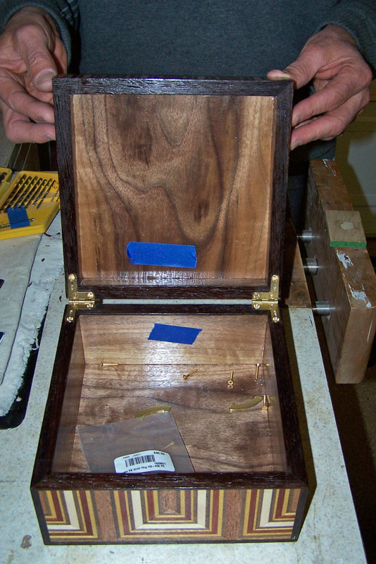 And that completes the installation of the quadrant hinges. Nice looking box, isn't it? Scott did a good job building it.