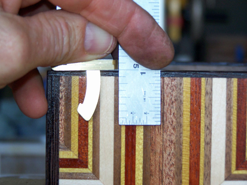 The final step is to make the mortises for the support arms. The support arms are about 1.25" long. When the top is closed, the support arm must be fully contained within a mortise in the bottom and in the top. You can divide the arm between the top and the bottom or you can mostly contain it within the bottom. If your top is very thin, you'll want to contain the arm mostly within the bottom.