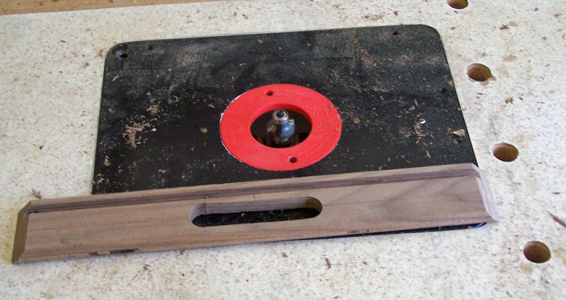 This picture just shows how the tray side sits in the jig. When making the cuts, make sure you position the wood correctly before you slide the jig forward. Whatever you do, don't let the jig sit against the router fence and slide the wood down on the jig. That will ruin your side.