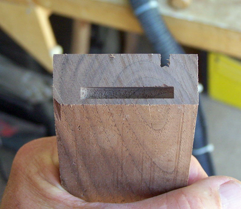 When you have everything adjusted, your slot should look somewhat like the next picture. Centering can cause a problem (to be discussed later) but it allows you to cut both ends of each side without making any adjustments to your setup.