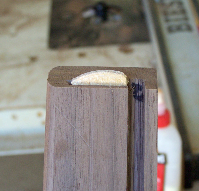 This next picture shows what an ff biscuit looks like in the slot. You don't want the slot so deep that more than half the biscuit goes into it.
