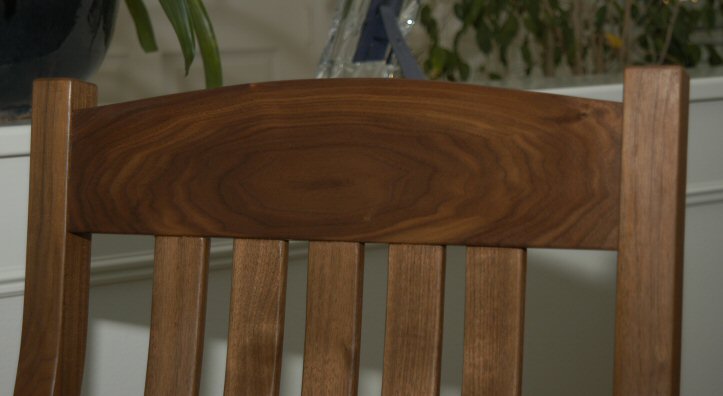 The seat is flat – designed for the addition of a tied on cushion. To minimize wood movement, I made the seat from quarter sawn walnut. The seat is only glued to the frame in the front. The rear of the seat is held down by the back slats. This allows the seat to move, i.e., expand and contract, in relation to the chair frame.