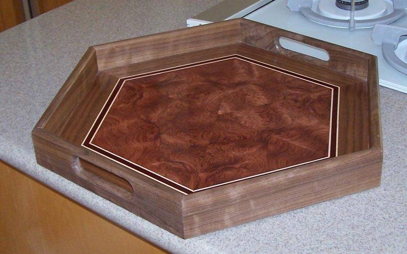 Here are a few samples of veneered serving trays I've made. The final design is only limited by your imagination, however.