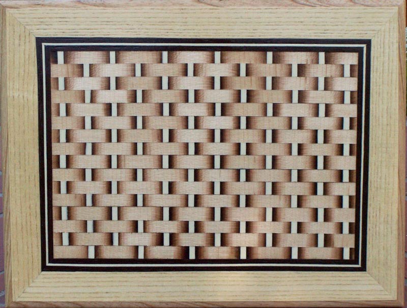 The next panel is in a pattern known as "Basket weave". The weave is sand shaded maple with vertical strips of holly. The filetti is wenge and holly and the border is ash.