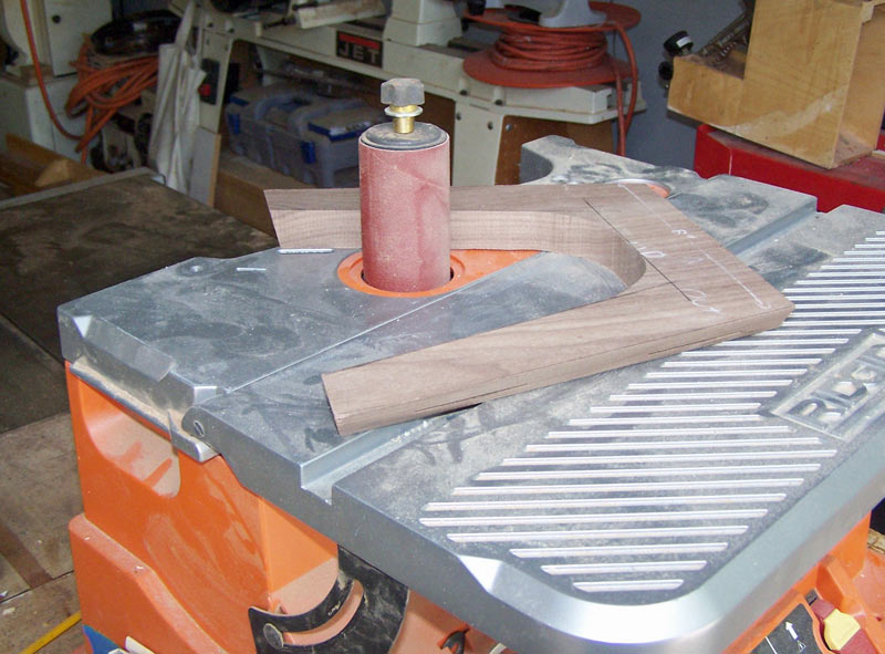 Next, I sanded the inside of the legs on my spindle sander to remove the bandsaw marks.