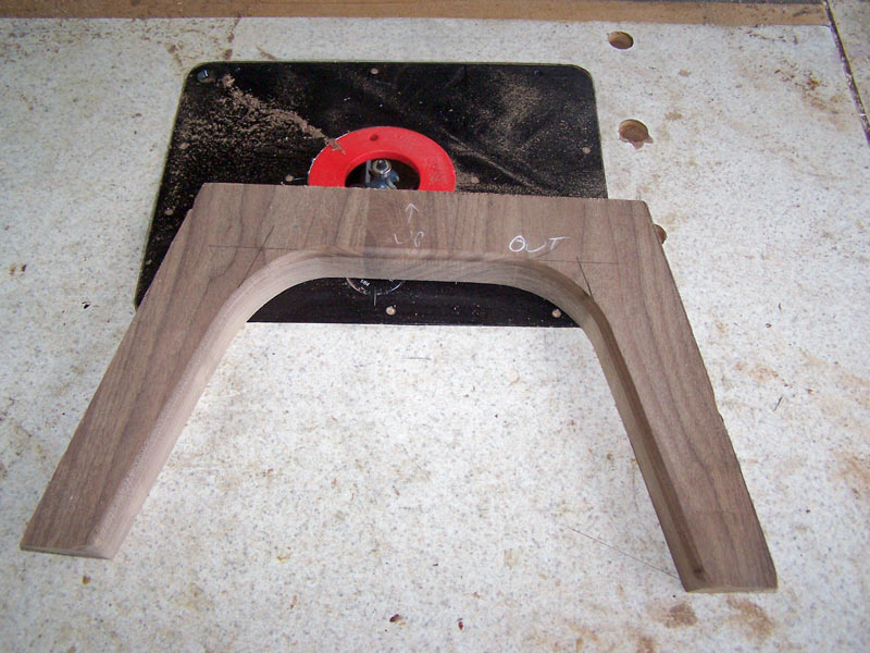 Then I put a 1/4" round over bit in my router (in the router table) and rounded over the outside edge of the legs.
