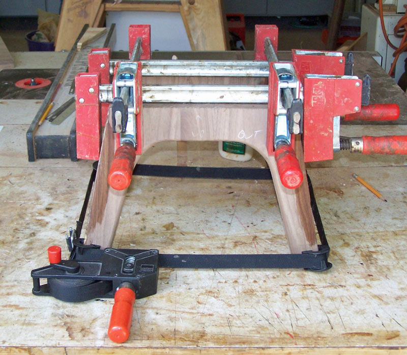 Then glue everything up, making sure that everything is aligned at the top. I used a strap clamp and four bar clamps but you could use all bar clamps.
