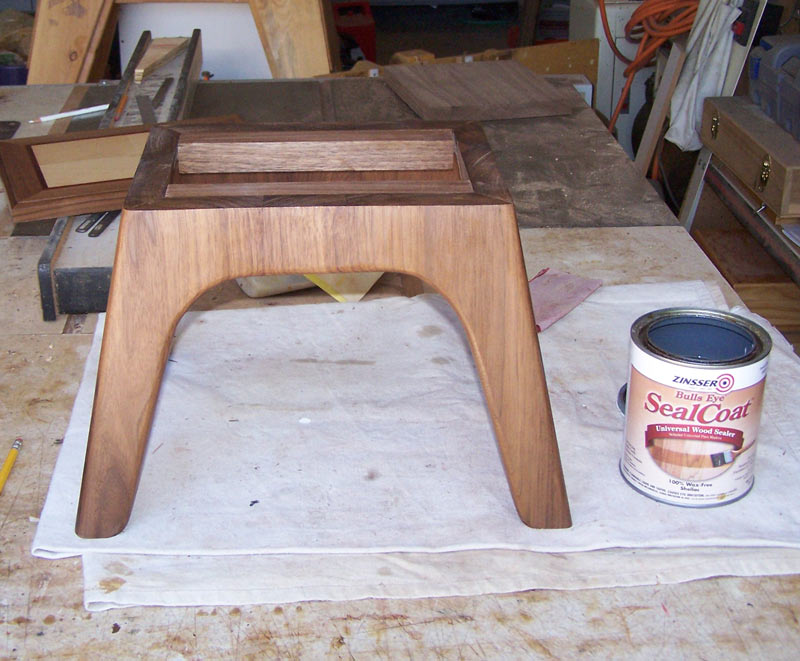 After cleaning up the base, I put a coat of dewaxed shellac on it. Now we can see what it's going to look like.