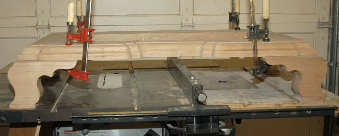 4/10/05 - I haven't received the slot cutter that I need to install the drawer bottoms (should be tomorrow), so I started making the base molding. I used a 1/2 inch cove bit and a 1/2 inch roundover bit to make the ogee shape.