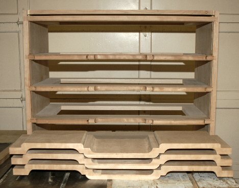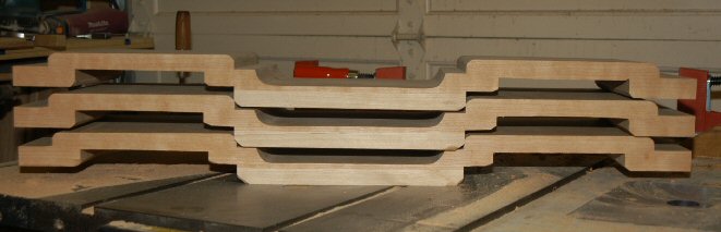 3/22/05 - I'm working on shaping the drawer fronts. I still have a lot of shaping to go but I hogged out a lot of wood today.