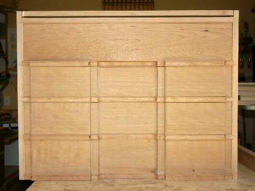 4/5/05 - No pictures but I'm in the process of making the drawers. I have all of the sides dovetailed into the drawer fronts and will start dovetailing the drawer rears to the sides. I will use a slot cutter to cut the groove into the back of the sculpted drawer fronts for the bottoms. I ordered the slot cutter but won't receive it for a week or so.