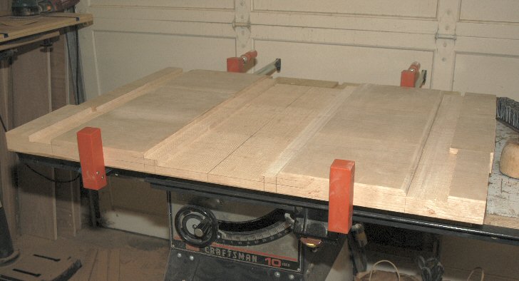 2/19/05 - I cut the drawer blockfronts today. It's really a nerve racking process because the three lower drawers all come from the same board. If I were to make a mistake, I probably couldn't just replace the one board - I'd have to replace all of them!