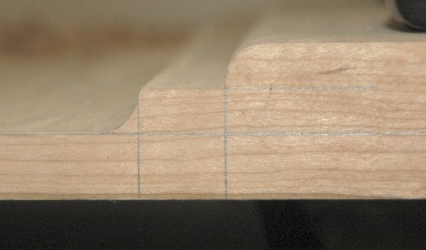 2/21/05 - John McAlister of the SAPFM contacted me yesterday evening with some information that the blockfront should be closer to 7/8 than to 1/2. Then Randy Wilkerson posted on the SAPFM forum to say that it should be 3/4 inch. This was followed by a posting by Craig Bentzley who had a cast of a Townsend shell that was about 3/4 inch. This just reinforced my opinion that the blockfront, at 1/2 inch, was just too "flat" - it didn't really stand out like the blockfronts on the chests I've seen in pictures.