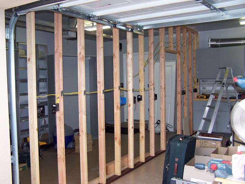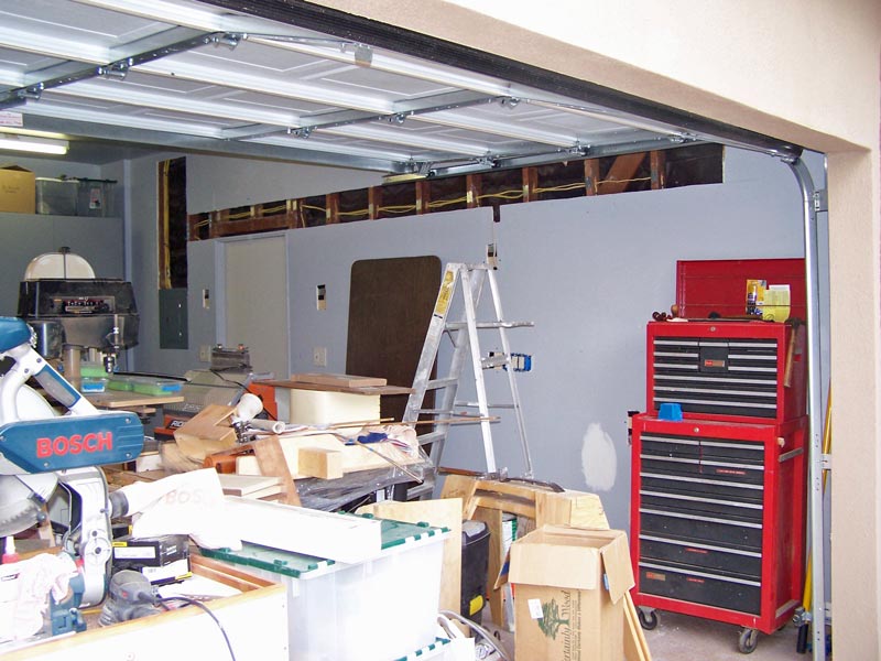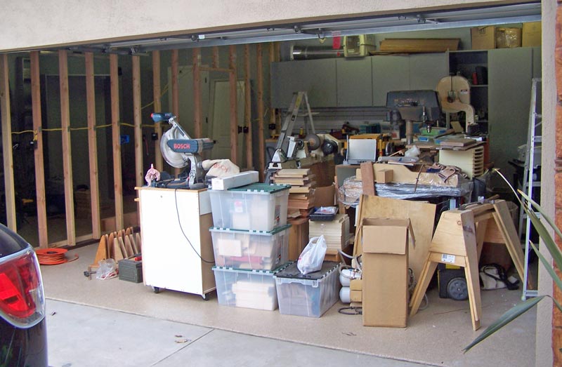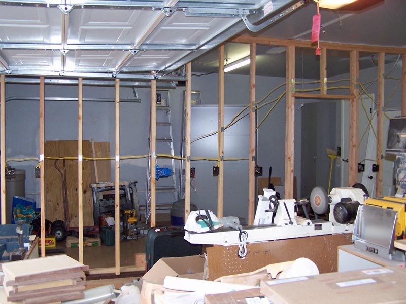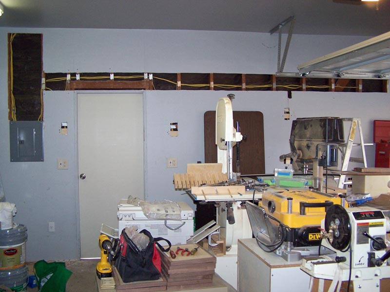 04/17/2011 It's been quite a while since I posted anything here. Judy and I bought a house together. The house has a three car garage and I get the two car side for my shop, while Judy gets the single car side. That's a lot more space than I had before. I'm building a wall between the single car bay and the two car bay to keep the dust away from Judy's car. My hope is that I'll be able to leave enough room to put my car in at night - that is, I'll put things on rollers so I can roll them over at night to park and then roll them into the space when I back the car out. Here's a few pictures of where I am now.